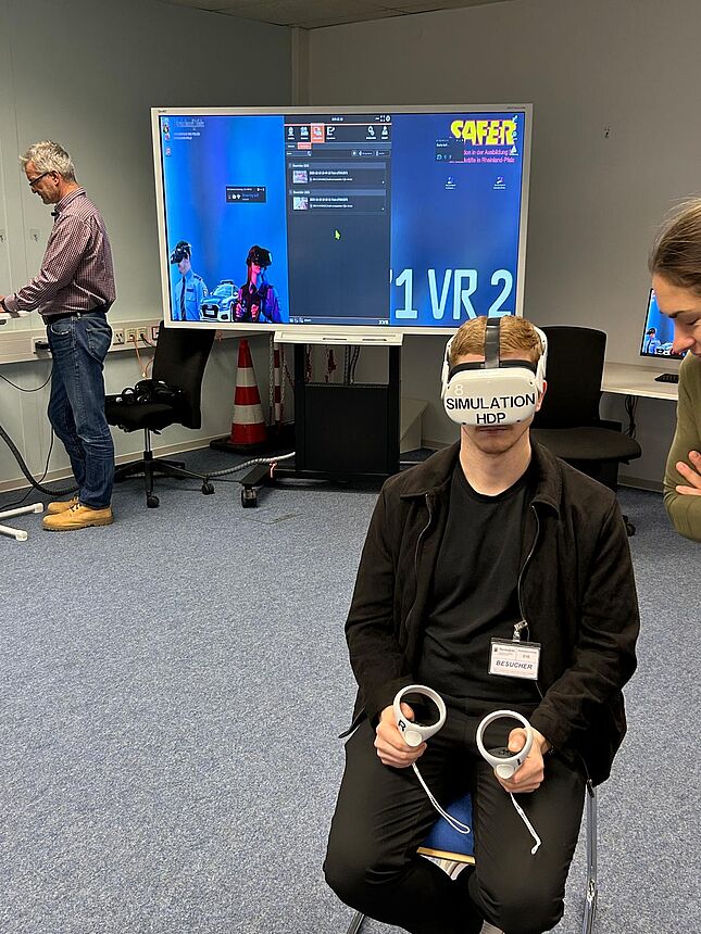 Im Rahmen unseres Besuchs erhielten wir Einblicke in die AR- und VR-Anwendung SAFER (Simulation in der Ausbildung für Einsatzkräfte in Rheinland-Pfalz). In dieser dreidimensionalen Lernumgebung werden reale Einsatzsituationen virtuell abgebildet und aus unterschiedlichen Perspektiven erlebbar gemacht. Situationen werden nicht nur erklärt, sondern können emotional und körperlich nachvollzogen werden.