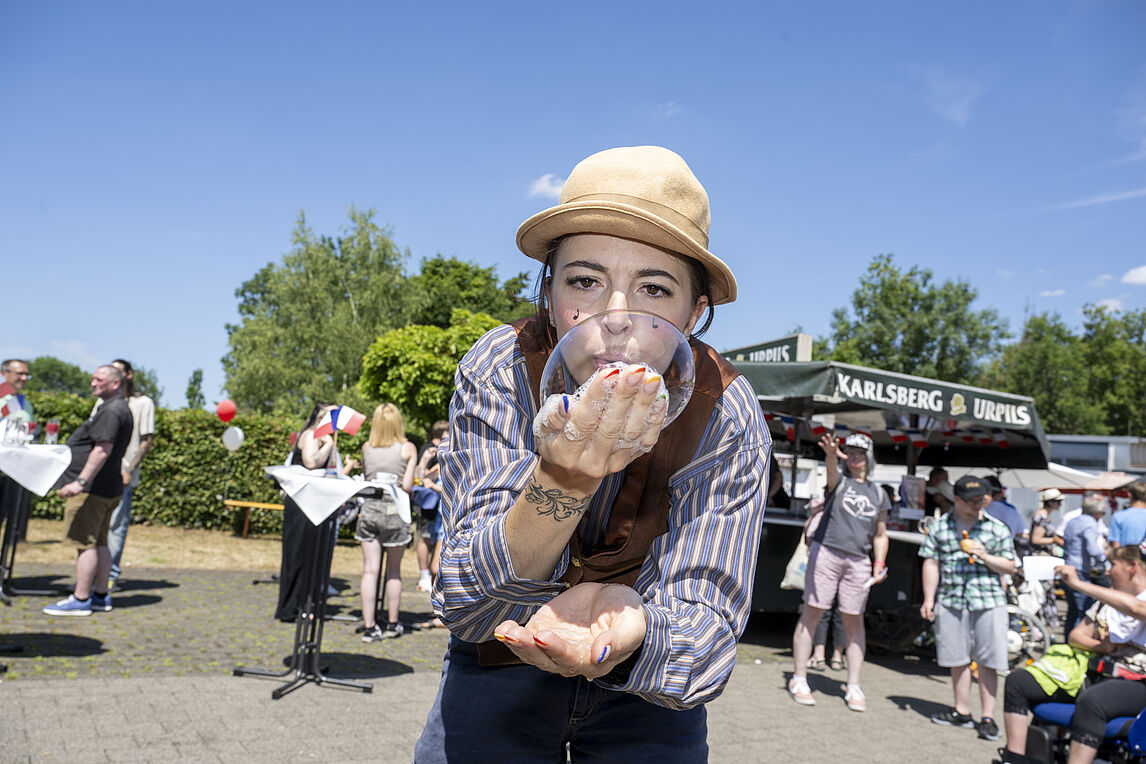 Für jede Menge Unterhaltung sorgten die Walking Acts: Die jungen Künstler der Zirkusschule Kokolores aus Saarbrücken zogen mit ihren akrobatischen Darbietungen in ihren Bann. Kasia Balou begeisterte mit Clownerie und Pantomime, charmant und ganz ohne Worte. Musikalisch sorgte unser inklusives DJ-Team rund um Holger Wolff, unterstützt von DJ Hajö, für die passende Stimmung – mit Partyhits, die sogar einige von uns auf die Tanzfläche lockten.