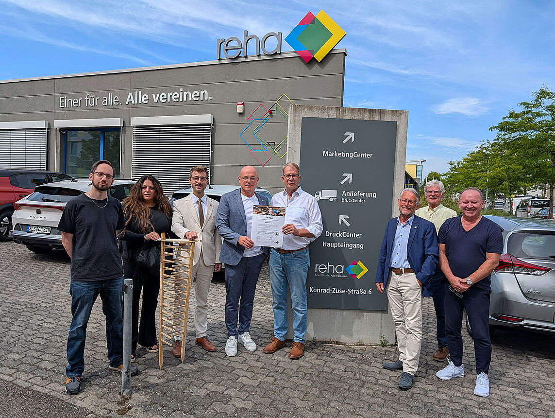Am 18. Juli 2025 besuchten Vertreter der Stadt Blieskastel das reha DruckCenter auf den Saarbrücker Saarterrassen. Bürgermeister Bernd Hertzler, Hauptdezernent Jens Welsch, Beigeordneter Guido Freidinger sowie Thomas Zimmer vom zuständigen Fachamt kamen gemeinsam mit den Behindertenbeauftragten Carmen Geraci und Wolfgang Giffel, um sich vor Ort ein Bild vom inklusiven Arbeitsumfeld und der reha gmbh als professionellem Dienstleister zu machen.