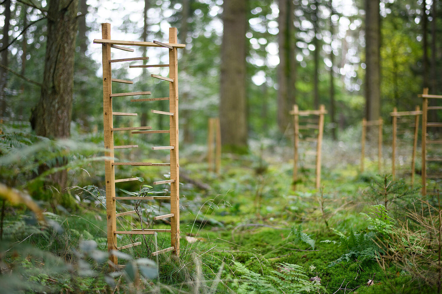 - Wirksamer Pflanzen(einzel)-schutz vor Fege- und Verbiss-Schäden durch horizontal montierte Holzsprossen